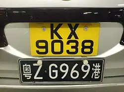![]() Regular legal standard number plate from SAR Hong Kong. | |