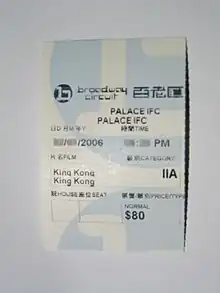 A movie ticket in Hong Kong indicating the rating of King Kong.