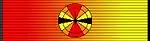 All aforementioned awards hung from the same 28mm wide silk moiré yellow ribbon bearing four vertical 4 mm wide tricolour (blue-white-red in the right half and red-white-blue in the left half) stripes positioned on the ribbon edges and 4 mm apart at the center. The rosette was made of the same ribbon.[3]