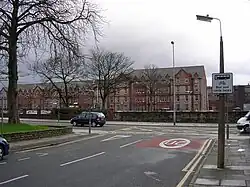 In June 1941, during the Manchester Blitz, the hospital on Chapel Street was struck by German bombs and 14 nurses died.[7] Following the formation of the NHS Trust in 1990 and budget cuts imposed by the Government in the early 1990s, the hospital on Chapel Street closed in 1994 and was converted into luxury flats.[8] A memorial stone tablet to commemorate the nurses killed during the Blitz remains above the original Chapel Street entrance.[7]