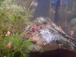 An aquarium for this species should be well furnished, ideally with a mixture of live aquatic plants, and solid furnishings providing caves, sheltered areas and hiding places to give the fish security. Floating plants to provide additional areas of shade are also welcomed by the fish.