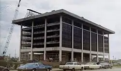 In early December 1969, it was announced that Evans Construction Company of Springfield was the low bidder and was awarded the general contract.[10] Groundbreaking of the building took place before the end of the year. While the construction was only to be the company's new six story headquarters, in the original project plan was the possibility for and additional building on the property. Almost two years into the construction, Dan Bannister, president of Horace Mann, petitioned the City Council for a year's extension on developing a commercial building on its urban renewal site. Bannister further suggested that perhaps the Springfield Public Library (Lincoln Library) could build on the site, which has been designated to hold a 50,000 square foot structure.[11]