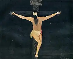 Horace Pippin (February 22, 1888 – July 6, 1946) was an American painter who painted a range of themes, including scenes inspired by his service in World War I, landscapes, portraits, and biblical subjects. Some of his best-known works address the U.S.'s history of slavery and racial segregation. He was the first Black artist to be the subject of a monograph, Selden Rodman's Horace Pippin, A Negro Painter in America (1947), and The New York Times eulogized him as "the most important Negro painter" in American history.[1][2] He is buried at Chestnut Grove Cemetery Annex in West Goshen Township, Pennsylvania.[3] A Pennsylvania State historical Marker at 327 Gay Street, West Chester, Pennsylvania, identifies his home at the time of his death and commemorates his accomplishments.[4]
