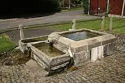 A spring well rises 150 yards (137.2 m) north from the church on Spring Lane: "a deep open cistern feeds water to three adjacent troughs".[20] The well, paid for by the Constables of Horbling, dates from 1711. It has an added 1981 inscription commemorating the marriage of the Prince of Wales to Lady Diana Spencer, and is Grade II* listed.[21]