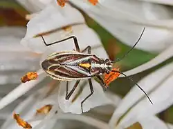 Adults can be seen from May to August.[3] These polyphagous bugs mainly feed on nectar and juices of Glechoma hederacea, Achillea millefolium, Angelica sylvestris, Galium, Senecio and Bromus species.[3] It is also often found on Asphodelus.[4]