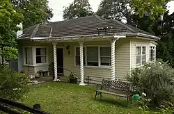 Residential growth in the area was left to private developers, who acquired land both east and west of the railway station. Realizing that working class housing tended to be close to railway stations, the developers aimed at providing the middle classes with quality housing further from the station, in areas with views. One of the first purchasers of land in the area was Annie Roberts, wife of Oscar Garibaldi Roberts, who became one of the first councilors in the Hornsby Shire. Having acquired a property in Rosemead Road, the Roberts family built "Mount Errington", a spectacular mansion in the Arts and Crafts style, now heritage-listed.[7] The Roberts family later acquired twelve blocks of land, which were then sub-divided into twenty-three blocks and offered for sale as the Roberts Mount Errington Sub-division. The area proceeded to grow as a prestige housing estate, featuring a number of houses in the Federation style. One of them was Birklands, a heritage-listed, Federation house built in 1902 in Dural Street. The house was originally built for Louis Spier Roberts and his wife Elizabeth, and stayed with the Roberts family until 1938.[8]