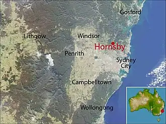 The Hornsby Plateau is a dissected sandstone plateau lying to the north of Sydney Harbour that rises 200 metres. The plateau is a part of the larger Sydney Basin structure.[1]