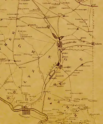 Horse Creek Valley is a geographic area along Horse Creek, a tributary of the Savannah River. It lies within present-day Aiken County, South Carolina (prior to 1872, in Edgefield District / Edgefield County). The area is alternately referred to as "Midland Valley". Rising near Vaucluse, South Carolina, Horse Creek enters the Savannah two miles downstream of downtown Augusta, Georgia. Other communities along Horse Creek include Graniteville, Warrenville, Gloverville, Langley, Burnettown, Bath, and Clearwater. While Horse Creek itself is rather insignificant, its potential for water power led to early examples of Southern industrialization, including a textile mill at Vaucluse (1830) and William Gregg's Graniteville Mill (1845). The textile industry continued to play a primary role until the Graniteville Train Derailment and final closure of the Graniteville Mill in 2006.