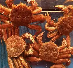 The horsehair crab (Erimacrus isenbeckii) is a species of crab which is found mainly in the Northwest Pacific, around the Hokkaido coast in the Sea of Okhotsk and the Western Bering Sea and is an important commercial species used in Japanese cuisine.[1][2] It is also known by its Japanese name, kegani (ケガニ "hairy crab").