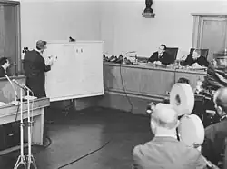 The trial started on 10 March 1966, focused mainly on I.G. Farben and its collaboration with the SS. The case was tried directly by the GDR Supreme Court. To describe the crimes which Fischer was charged with, the prosecution sometimes directed the judges to Fischer's own statements and sketches of the camps. On several charges in which the evidence was weaker, the prosecutor was forced to rely on Fischer's own statements. His personal records and sketches were also used as evidence. The trial lasted roughly a week, and Fischer was found guilty of crimes against humanity.[1]
