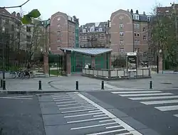 An underground car park occupies the space between the platforms and the small park above. This was previously the site of a nursery school, the École gardienne no. 1, the municipality's first and biggest. Opened in 1864, it catered for 533 children in 10 classes, and had two playgrounds and a canteen.[2]