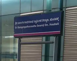 Although the station has not yet been renamed, it is referred to as "Sri Balagangadhara Natha Swamiji Station – Hosahalli" in announcements on the Namma Metro.[4][5][6]