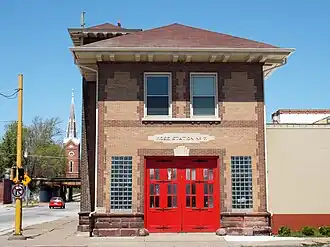 The first group of volunteer firefighters in Davenport were organized in 1856 and called the Independent Fire Engine and Hose Company.[2] The city's first firehouse, Hose Station No. 1, was built on Perry Street in 1877 for the Fire King Engine 2nd Hose Company. Around the turn of the 20th century, the city built other small hose stations throughout the city such as Hose Station No. 7. They were built in response to the East Davenport Fire of 1901.[3] This building housed one of seven hose companies and two ladder companies in Davenport's fire department. The company had a crew of four that was headed by Capt. Christian R. Thiessen. The building has held several different businesses after it was replaced by larger, more modern fire stations.
