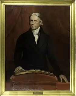 Hosea Ballou was born in Richmond, New Hampshire, to a family of Huguenot origin. The family claimed to be of Anglo-Norman heritage. The son of Maturin Ballou, a Baptist minister, Hosea Ballou was self-educated, and devoted himself early on to the ministry. In 1789 he converted to Universalism, and in 1794 became pastor of a congregation in Dana, Massachusetts.[1] Ballou was also a high-ranking freemason, who attained the position of Junior Grand Warden of the Grand Lodge of New Hampshire in 1811.[2]