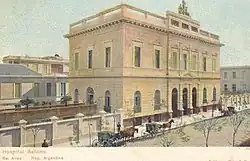 The hospital was originally an initiative of a commission formed by distinguished members of the numerous Italian immigrant community of the city. Its foundation stone was laid on March 12, 1854, on a tract of land donated by a priest, Father José Arata. Count Giovanni Battista Albini of Sardinia contributed in the name of King Vittorio Emanuele I with the sum of 45,000 pesos. The construction was nevertheless delayed due to lack of funding, until in 1858 it was resumed by the association Unione e Benevolenza.