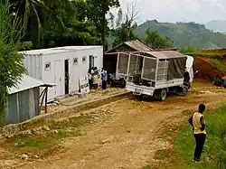 A Clinic In A Can is a self-contained medical clinic built in a shipping container. These clinics are built in the US and shipped around the world, providing an important resource for medical relief in the face of disaster or in areas with poor infrastructure.[4]