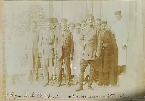 Hossein Khan Motamed began his career as an assistant surgeon in City Hospital of Tehran, 1915–1917. In a short time he became the chief of surgery section 1919-1920. He then became the chief of surgical section in Sina Hospital (also known as Sepah)1920–1922 and later chief of surgical section of Military Pahlavi Hospital with a rank of Colonel 1922–1936.[1]