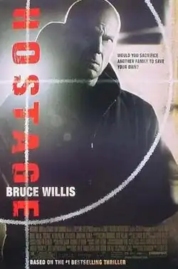 Hostage is a 2005 action thriller film directed by Florent Siri from the screenplay by Doug Richardson. It is based on the 2001 novel of the same name by Robert Crais. The film stars Bruce Willis (who co-produced the film), Kevin Pollak, Ben Foster, and Jonathan Tucker and follows the police chief who takes place as the negotiator when the family of a wealthy accountant is held hostage by three teenagers. The film earned negative reviews from critics and grossed $77 million.