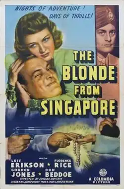 The Blonde from Singapore (also released as Hot Pearls) is a 1941 American adventure film directed by Edward Dmytryk and starring Florence Rice, Leif Erickson and Gordon Jones.[1] It was produced and distributed by Columbia Pictures.