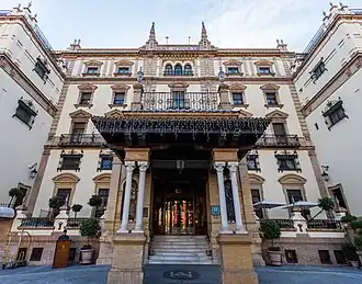 Hotel Alfonso XIII is a historic hotel in Seville, Spain, located on Calle San Fernando, next to the University of Seville.[1] Designed by the architect José Espiau y Muñoz, it was built between 1916 and 1928 especially for the Ibero-American Exposition of 1929. It officially opened on April 28, 1929, with a sumptuous banquet attended by King Alfonso XIII and Queen Victoria Eugenie of Battenberg. The hotel is owned by the City of Seville and managed by The Luxury Collection division of Marriott International.