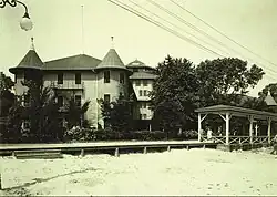 At the turn of the 20th Century, George A. Boeckling, then general manager of Cedar Point, believed that the longer guests stayed at Cedar Point, the more profitable the resort would be. The park's two hotels at that time, the 20-room Bay Shore Hotel and the 125-room White House Hotel, were having trouble meeting the demands of overnight visitors.[3] Boeckling made plans to build a massive hotel on the resort's beach. Keeping with Boeckling's vision of Cedar Point as the "Queen of American Watering Places", he set out to build the resort's grandest hotel.