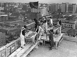 In 1921, the Young Women's Christian Association secured a $1.25 million loan in order to build a hotel that could host professional women traveling alone, buying a plot of land in Downtown Los Angeles. At the time the hotel was established, women were prevented from booking a room in hotels unless they were accompanied by a man.[1][2] The YWCA raised money from supporters in order to fund the hotel's construction, which started in 1925. The construction finished ahead of schedule with 13 stories and 409 rooms, and the hotel was dedicated on August 14, 1926.[3]
