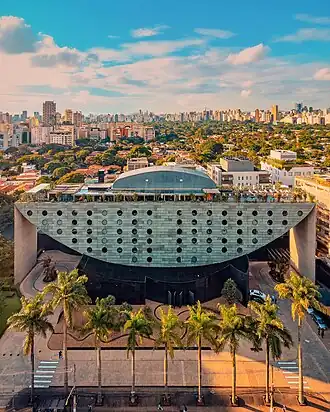 The Hotel Unique is a hotel located in the district of Jardins in the Brazilian city of São Paulo, established in 2002. The 25 metres (82 ft) tall building, designed by architect Ruy Ohtake, was projected in the shape of a 100 metres (330 ft) inverted arc, taking advantage of the district's zoning limit of seven-story buildings. [1] Its shape is compared to a boat or a watermelon.[2]