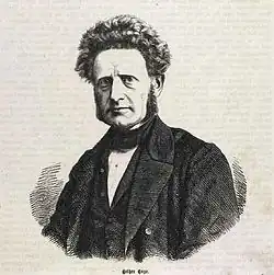 Hother Hage was the son of Christopher Friedenreich Hage and Arnette Christiane Just and was thus a member of one of the leading liberal families in Denmark. As a journalist, Hage was a regular contributor for the national liberal newspapers Fædrelandet and Dansk Folketidende.[1] Economically, he was a strong advocate of free trade. Politically, he belonged to the moderate liberal school and Alexis de Tocqueville was his model. Together with his brothers Johannes Dam Hage and Alfred Hage, as well as his nephews Orla Lehmann and Carl Ploug, he was one of the main proponents of the democratisation of Denmark. He exercised his most prominent role as member of the Roskilde Stænder in April and May 1848 where the law for the election of the Danish Constituent Assembly was adopted, and later became one of the members appointed by the King in that Assembly. This allowed him to contribute significantly to the passing of the new Constitution of 5 June 1849, establishing a bicameral parliament with a directly elected lower house and an indirectly elected upper house. Hother Hage was repeatedly elected to the Folketing.[2] He refused however the post of Minister of Justice when offered to him in 1863 by Monrad.