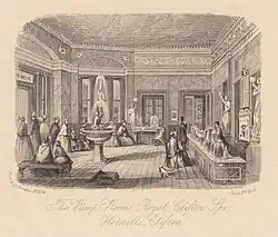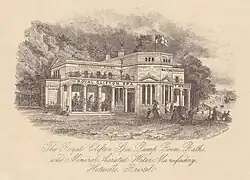 A new pump room was built in 1822 and in the mid-19th century efforts were made to promote the spa, styled as The Royal Clifton Spa. The promotional efforts included the publication of a new guide, with sections written by eminent local scientists, William Herapath and Robert Etheridge, who discussed the water's chemistry and medicinal qualities, as well as the area's geology and botany.[17]