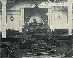In 1889, the House of Peers Ordinance established the House of Peers and its composition. For the first session of the Imperial Diet (November 1890–March 1891), there were 145 hereditary members and 106 imperial appointees and high taxpayers, for a total of 251 members. In the 1920s, four new peers elected by the Japan Imperial Academy were added, and the number of peers elected by the top taxpayers of each prefecture was increased from 47 to 66 as some prefectures now elected two members. Inversely, the minimum age for hereditary (dukes and marquesses) and mutually elected (counts, viscounts and barons) noble peers was increased to 30, slightly reducing their number. By 1938, membership reached 409 seats.[2] After the addition of seats for the imperial colonies of Chōsen (Korea) and Taiwan (Formosa) during the last stages of WWII, it stood at 418 at the beginning of the 89th Imperial Diet in November 1945,[3] briefly before General Douglas MacArthur's "purge" barred many members from public office. In 1947, during its 92nd and final session, the number of members was 373.