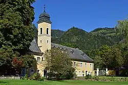 In 1599, the Schwarzenbergs were elevated to Imperial Counts, and the family was later raised to princely status in 1670.[1] In 1623 came the Styrian Dominion of Murau into the Schwarzenberg family due to the marriage of Count Georg Ludwig of Schwarzenberg (1586–1646) with Anna Neumann von Wasserleonburg (1535–1623). Furthermore, the House of Schwarzenberg acquired extensive land holdings in Bohemia in 1661 through a marriage alliance with the House of Eggenberg. In the 1670s, the Schwarzenbergs established their primary seat in Bohemia and, until 1918, their main residence was in Český Krumlov, Bohemia (now in Czech Republic).