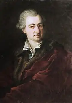 Johann Michael was known as a musical talent, who played piano and composed arias and menuets.[7] After Samuel von Brukenthal's retirement from politics, Johann collaborated with him in organizing and expanding his collections and library (the nucleus of the future Brukenthal National Museum, which includes also a Soterius von Sachsenheim collection[8]). He died on 31 March 1794 in Klausenburg (today Cluj-Napoca), where the family had moved after it had become clear that the seat of the provincial government was to be permanently located there.[6][9]
