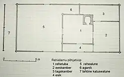- Rehielamu, The traditional Estonian farmhouse is a combined living space, "kiln" for cooking and drying crops, and threshing barn. The farmhouse is of two types, the põhjatüüp (northern type) and the Rehielamu lõunatüüp (southern type). No English article as of March 2013 but information is available at the Estonian Wikipedia written in Estonian.