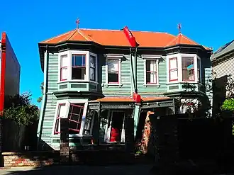 Traditionally, residential sections were quarter acre[3] (roughly 1000 sq m), but typical section sizes have been getting much smaller since the middle of the 1900s.[4] After a series of controversies over slum-like housing-conditions of the urban poor, from 1936 the then Labour government developed State housing – suburban housing built by the government and rented to poorer families. This housing stock was generally very well built and remains a feature in most cities, although now often privately owned.[5] Urban areas, where about 86% of New Zealand residents live,[6] are becoming more dense,[7] but remain very sparsely settled by international standards.[8] Many old office-blocks and church-buildings have been converted to apartments in New Zealand's major centres.[9][10]