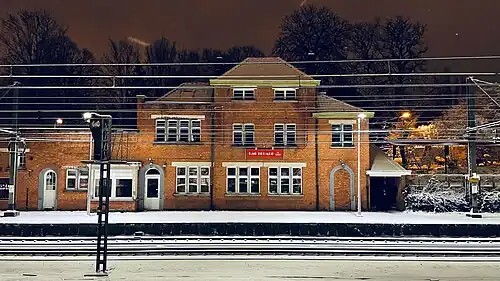 Hove is a railway station in Hove, just south of the city of Antwerp, Antwerp, Belgium. The station opened in 1888 on the Line 25 and Line 27.
