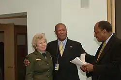 ![]() Dodson (center), alongside National Park Service Director Fran P. Mainella (left) and Deputy Director Don Murphy (right) in 2006 | |