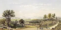 Howick village developed around the Howick Domain, and grew overtime to become a service centre for the surrounding rural areas.[26] The settlers were dependent on water transport and ferry services, until the construction of the Panmure Bridge across the Tāmaki River in 1865.[27][28][29] Howick was developed into an English-style village by the settlers,[30] becoming known as an area where potatoes and butter were produced.[31] In the 1850s and 1860s the Howick District Acclimation Society worked to introduce English birds such as the thrush and blackbird to the area, to develop an English atmosphere and as a measure to combat caterpillars in the orchards of the area.[32]