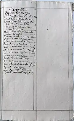 The town, although originally established before Jewish migration to Eastern Europe, was historically a Jewish-dominated shtetl throughout the period of occupancy by Imperial Russia under the Podolia Governorate.[15] The first record of Jewish presence in Hraniv is in 1738, when the Haydamaks plundered the town, along with Rashkiv, and killed many Jews, and again in 1768. The town was nearly destroyed.[16] The Jewish population was 662 in 1765, and 146 in 1776, as a result of the plundering. The population had risen to 496 by 1790.[17] By 1897, the Jewish population was 753[18] In modern times, the town is mostly occupied by Ukrainians, with little to no Jewish presence. There is a Jewish cemetery from the pre-war era.[19]