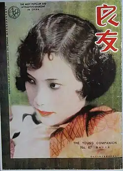![]() Hu Ping on the cover of The Young Companion or Liangyou magazine, February 1935. | |