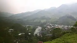 The Huancabamba runs in steep canyons for part of its course and with mountains on either side rising to more than 3,000 metres (9,800 ft) in elevation. A few kilometres of the river above Pozuzo is within the Yanachaga–Chemillén National Park.[4] The river is located in the ecological zone of the Peruvian Yungas, or Ceja de Selva ("eyebrow of the jungle"), the transition zone between the low jungles of the Amazon Basin and the Andes highlands.[5]