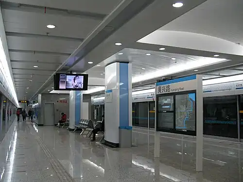 Huangxing Road (simplified Chinese: 黄兴路; traditional Chinese: 黃興路; pinyin: Huángxīng Lù) is a station on Shanghai Metro Line 8. It began operation on December 29, 2007.
