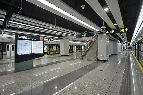 Huapeng Road (simplified Chinese: 华鹏路; traditional Chinese: 華鵬路; pinyin: Huápéng Lù) is a station on Line 13 of the Shanghai Metro,[1] part of phase two of the line. Located at Chengshan Road and Huapeng Road in the city's Pudong New Area, the station opened with the rest of phases two and three of Line 13 on 30 December 2018.[2] During the planning stages, the station was known as Liuli (Chinese: 六里).[3]