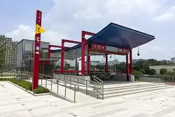 Huawei station (simplified Chinese: 花围站; traditional Chinese: 花圍站; pinyin: Huāwéi Zhàn; Cantonese Yale: Fāwàih Jaahm) is a station on Line 10 of the Guangzhou Metro. It is located under the intersection of Yulan Road and a planned road, south of Guanggang New Town Depot in Guangzhou's Liwan District. It opened on 29 June 2025.[1]