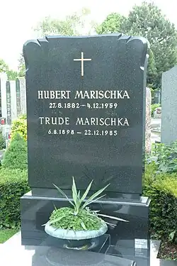 In 1907 he married Lizzy Léon (d. 1918), daughter of the librettist Viktor Léon. They had three children: Lisl Marischka, actress, 1908–1945, who married in 1933 Austrian baron Alfons von Gecmen-Waldeck; Viktor Marischka, born 1915; and the director Franz Marischka, born 1918. Hubert Marischka married as his second wife Lilian "Lilly" Karczag, daughter of the theatre director Wilhelm Karczag, and from this marriage had two more children, the director Georg Marischka, 1922–1999, and Tassilo Marischka, born 1928. This marriage ended in divorce. During World War II he was married for a short time to his third wife, Juliane. In 1946 he was married for the fourth and last time to the actress Trude Basch-Havel. Hubert Marischka died in Vienna, and is buried in the Hietzing Cemetery in Hietzing.