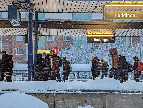 ![]() Huddinge station in winter | |||||||||||||||