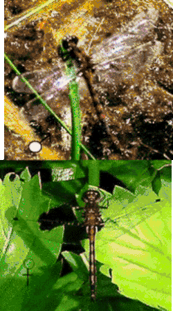 After mating, a male guards a female to prevent other males from mating with her. He does this by flying above her while she laying her eggs. It drives away other potential mates or maybe dragonflies of other species.[3] The female lays her eggs by dipping the tip of her abdomen in the water while hovering above the surface.