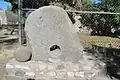 This structure has a square structure attached on its eastern side, and its overall length is about 25 meters, the square structure measures some 10 meters wide. This square structure probably had an access stairway, and depicts various structural details, for unknown purposes. On its south side there is another square structure, detached. It measure about 10 square meters possibly associated with ceremonies conducted in the temple.[1]