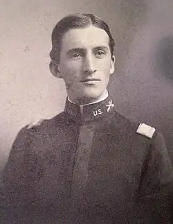 In 1894, Drum graduated from Xavier High School in New York City, which he had attended while his father was an instructor at the school.[2] Initially intent upon a career as a Jesuit priest, he enrolled at Boston College.[3] Under the provisions of a recently passed law allowing recognition for sons of officers who displayed exceptional bravery during the Spanish–American War, Drum was offered a direct commission as a second lieutenant on September 9, 1898, which he accepted.[4] (He received his Bachelor of Arts degree from Boston College in 1921.)[1][5][6][7][8][9]