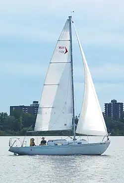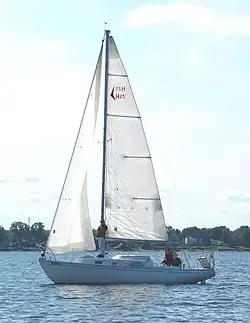 For sailing downwind the design may be equipped with a symmetrical or asymmetrical spinnaker.[9]