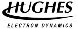 Hughes logo, adopted during the period (1997-2000) between the sales of portions of the company to Raytheon and Boeing. Each subsidiary of Hughes Space and Communications Company placed their name at the bottom of the logo.